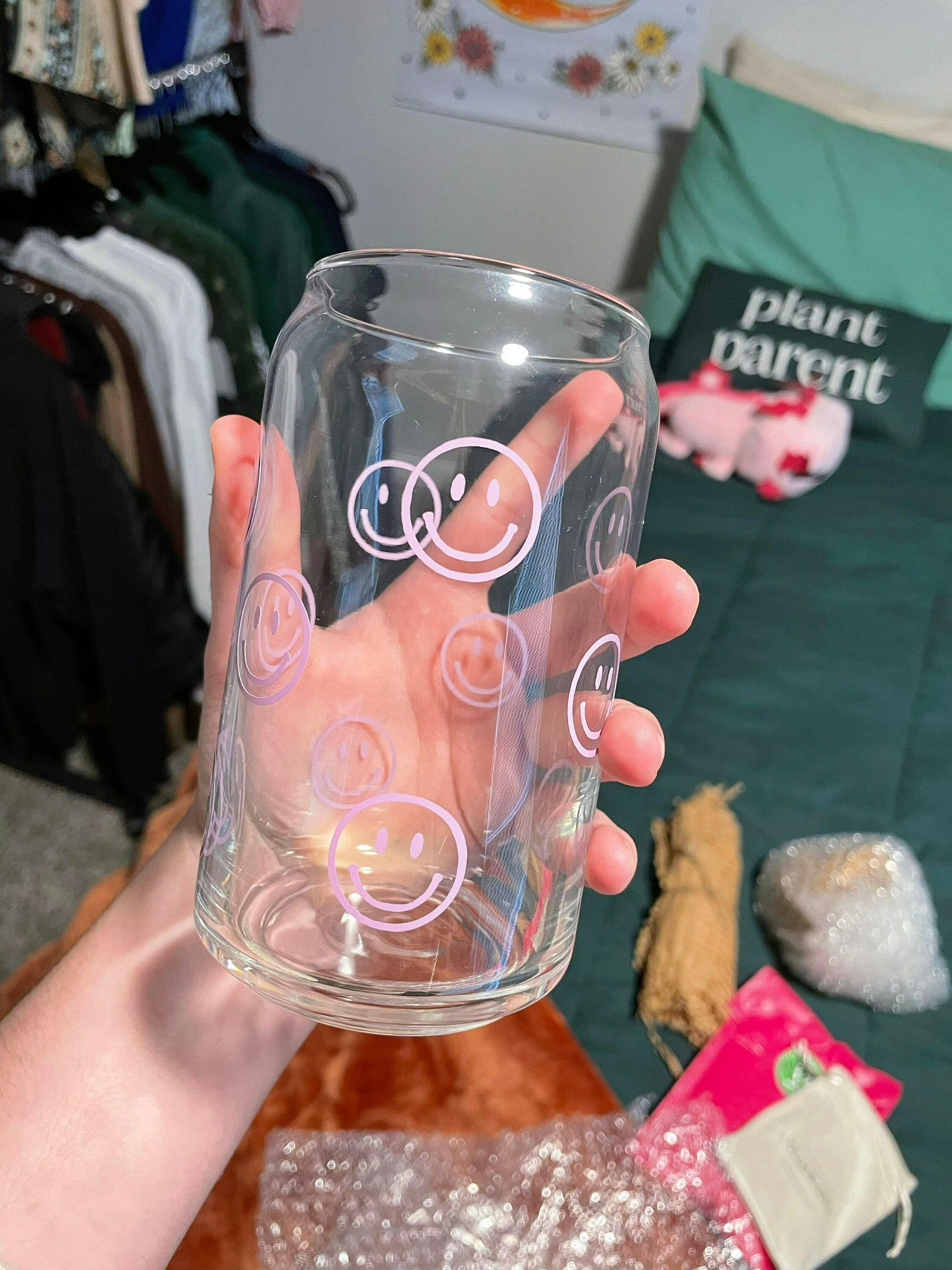 Purple Smiley Face Outline Glass Coffee Cup