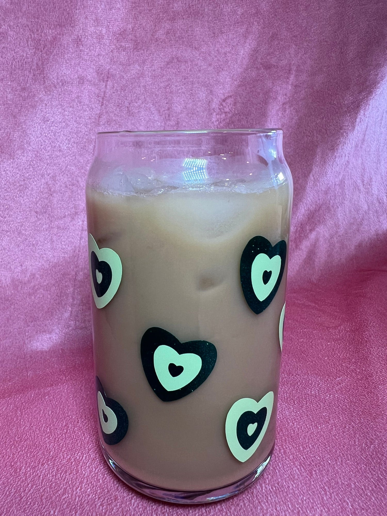 Sparkly Heart Glass Cup | Heart Iced Coffee Cup